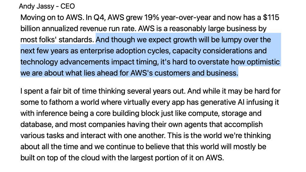 Amazon Web Services remains the crown jewel of Amazon’s business portfolio, generating industry-leading margins and serving as the primary profit engine for the entire company. However, recent commentary from CEO Andy Jassy about “lumpy” growth suggests that even this powerhouse division faces challenges in the current environment. Several factors are contributing to this dynamic: