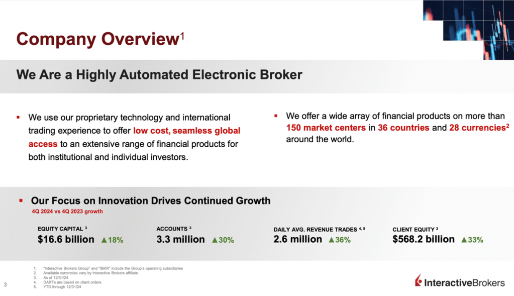 Low-Cost Structure: The company’s competitive pricing model has been a major driver of its growth. By leveraging automation and technology, Interactive Brokers has been able to offer some of the lowest trading fees in the industry, attracting cost-conscious investors.