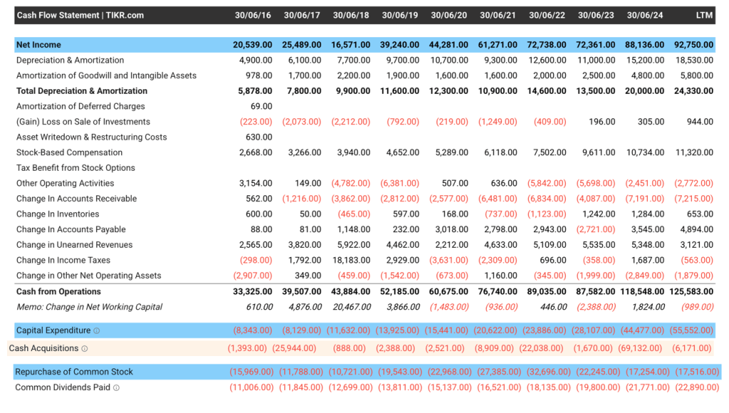 Microsoft maintains a fortress balance sheet, with approximately $80 billion in cash and equivalents. However, the company’s capital allocation priorities have shifted noticeably in recent years. The $70 billion acquisition of Activision Blizzard, completed in late 2023, represented Microsoft’s largest deal ever and signaled its ambitions in the gaming and metaverse spaces. Simultaneously, the company has reduced its share repurchase program from about $30 billion annually to closer to $20 billion as it redirects cash toward growth initiatives.