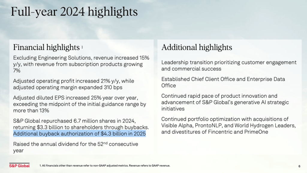 S&P Global’s financial performance underscores its status as a high-quality business. The company has raised its annual dividend for 52 consecutive years, a testament to its consistent profitability and commitment to shareholder returns. Even during challenging periods, such as the 2008 financial crisis, the company demonstrated remarkable resilience. While revenues fell by 40% from 2008 to 2011, profitability remained intact, highlighting the strength of its business model.