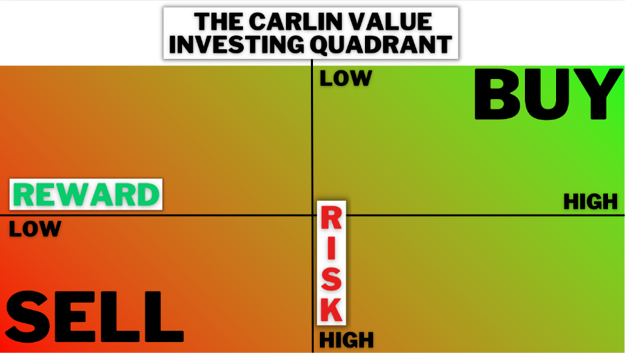 The core of value investing is taking advantage of market irrationalities by finding low risk and high reward investing opportunities. To put this value investing concept into a visual perspective I have developed the Value Investing Quadrant.
